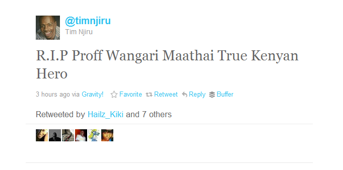 I commented that Wangari Maathai fought for the environment during the Moi era but she was loudly silent on manyย occasionย on both the Kenyatta and Kibaki era. People started attacking me how I am insensitive and so on by I stood and will stand by what I said. I don’t think that the good Professor would want us to be sycophants because she was not one. She would want us to be fair and we must be fair even to her history. We should not create some imaginary perfection.